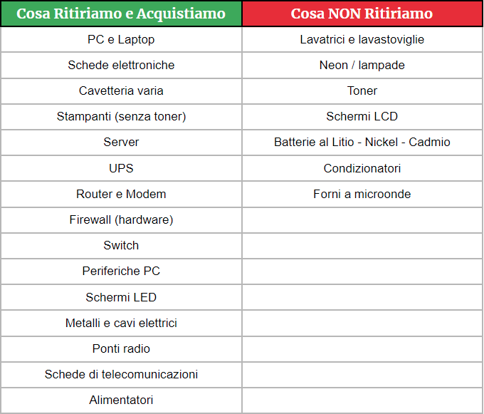 Siamo a servizio delle Aziende e P.I. che hanno bisogno di smaltire i propri rifiuti RAEE non pericolosi.